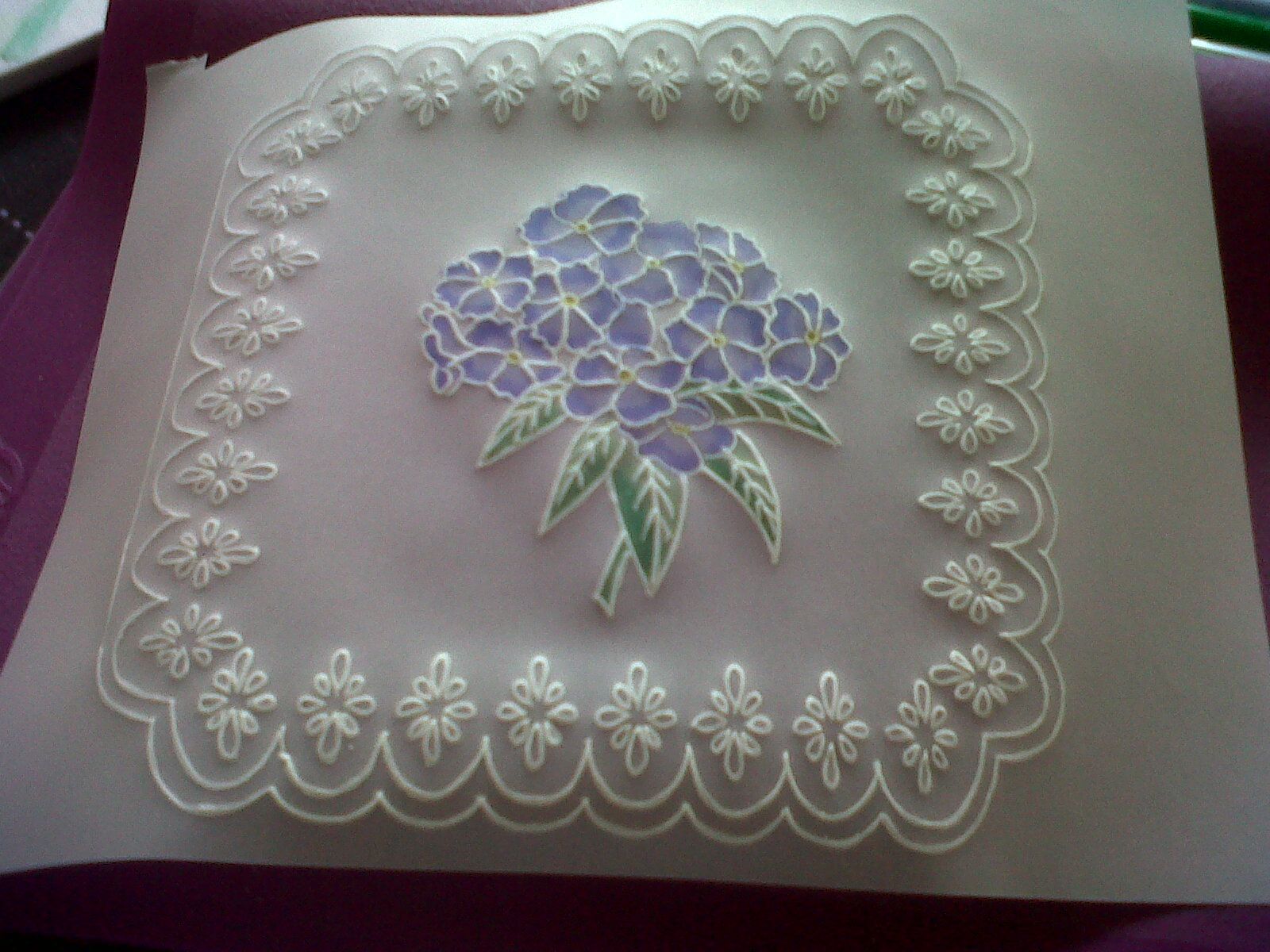 Donc la? j'ai essay?e de mettre en application les intructions apprisent lors d'un cours, avec la technique du pce et de l'embossage et de la dentelle...